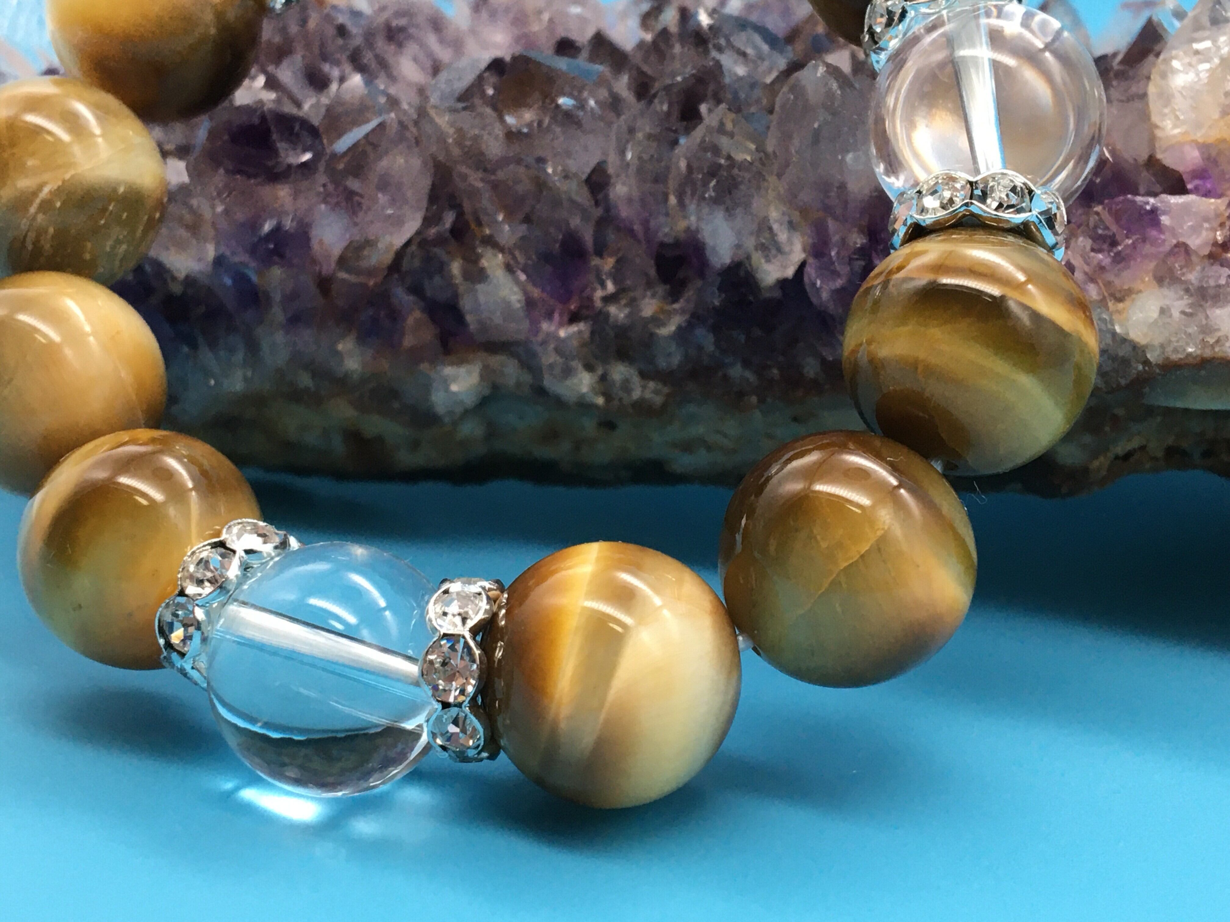ゴールデンタイガーアイ(14mm×10粒)、水晶(14mm×3粒)
