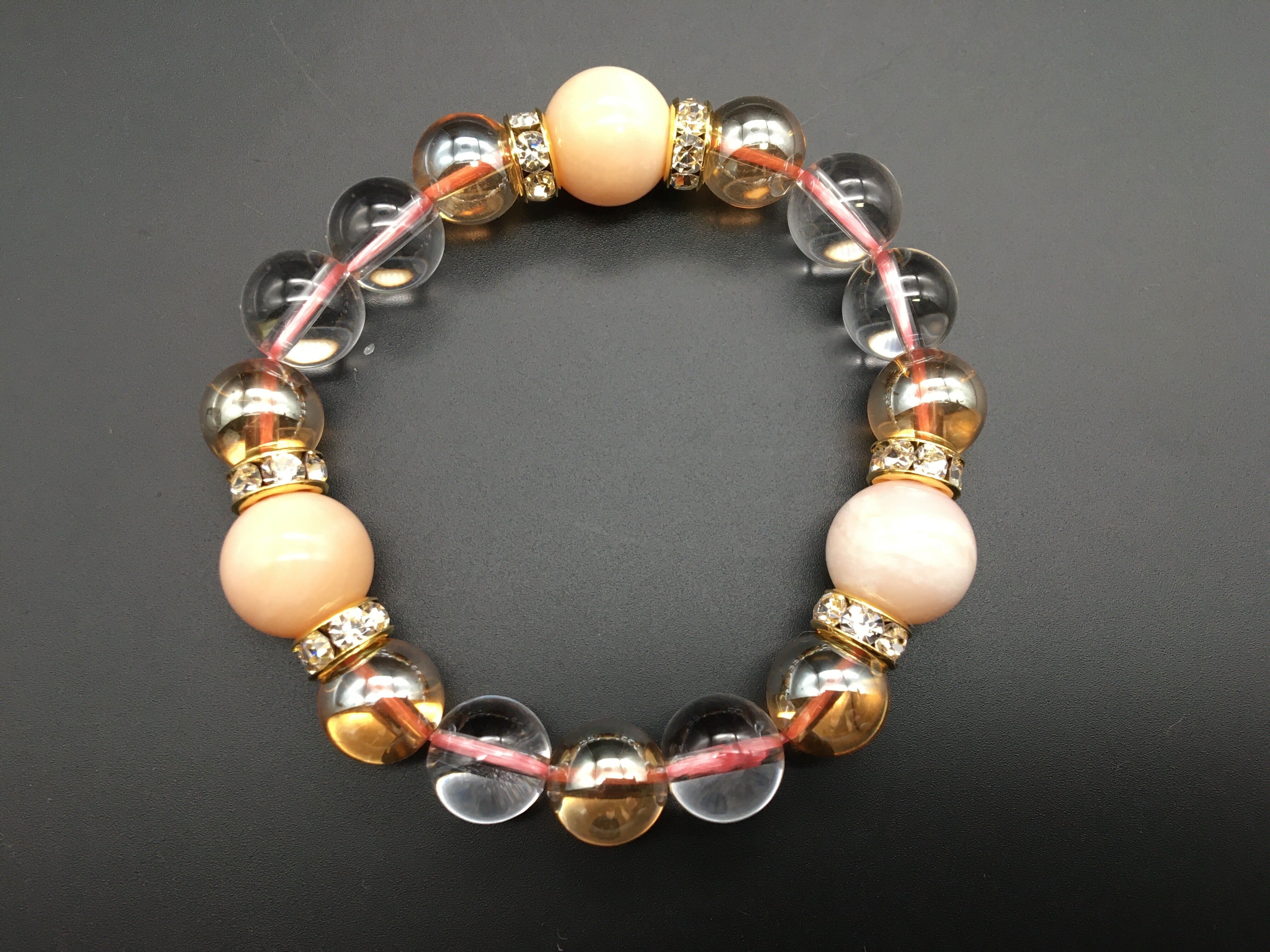 【ブレスレット】ピンクオパール・シャンパンオーラ・水晶(商品番号ps12-1)