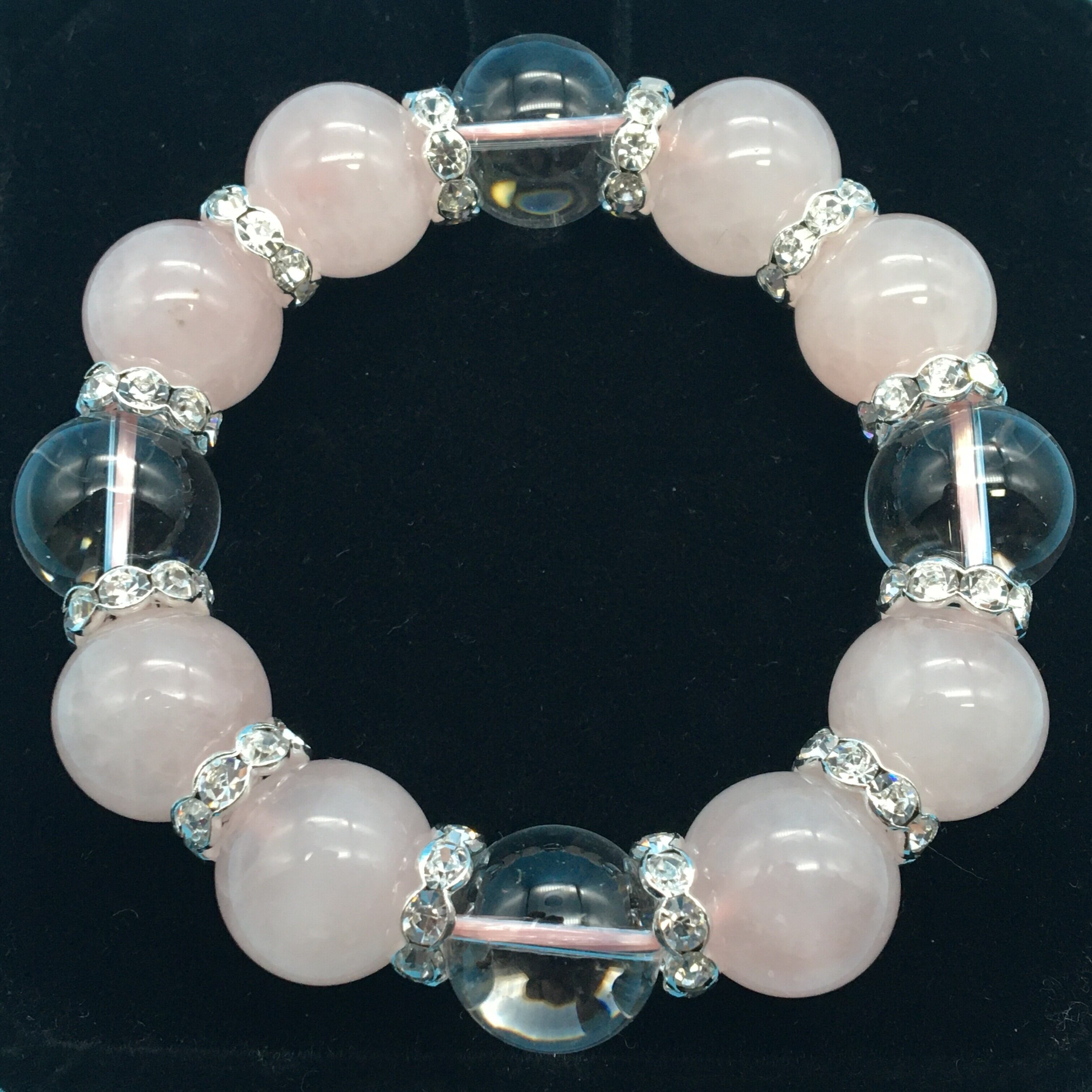 ローズクォーツ(14mm×8粒)、水晶(14mm×4粒)